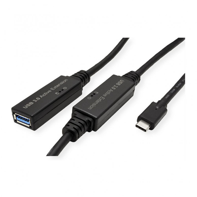 "ROLINE 12.04.1066. Cable length: 10 m. Connector 1: USB C, Connector 2: USB A, USB version: USB 3.2 Gen 1 (3.1 Gen 1), Maximum data transfer rate: 5 Gbit/s, Product colour: Black"\n"Active USB 3.0 / USB 3.2 Gen 1 extension cable (C male to A female) - for data rates up to 5Gbit/s over a distance of 10m!"