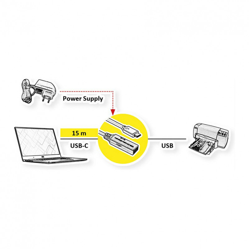 ROLINE USB 3.2 Gen 1 Aktives Repeater Kabel, Typ A - C, schwarz, 15 m