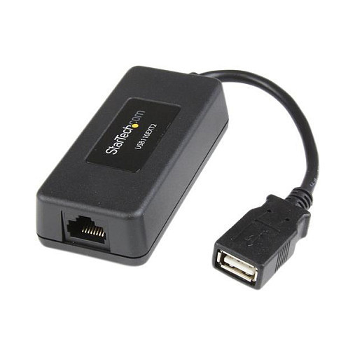 "StarTech.com 1 Port USB over Cat5 / Cat6 Ethernet Extender - up to 131ft (40m). Type: Network transmitter & receiver, Maximum transfer distance: 40 m, Data transfer rate: 12 Mbit/s. Product colour: Black, Certification: CE, FCC, REACH. Width: 40 mm, Depth: 85 mm, Height: 25 mm. Package width: 128 mm, Package depth: 128 mm, Package height: 60 mm. Compliance certificates: RoHS"\n"Extend a USB 1.1 device up to 40m (131ft) away from a computer, over a Cat5/Cat6 cable