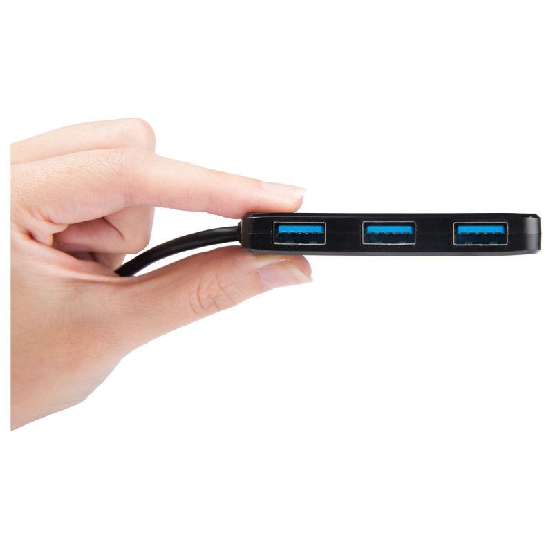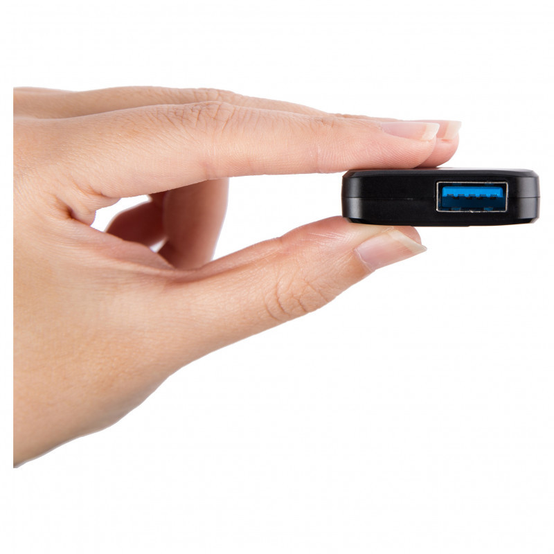 Transcend USB3.0 HUB2 – kompaktiškas ir patogus 4-Port USB hub’as, skirtas išplėsti kompiuterio ar nešiojamojo įrenginio USB jungčių skaičių. Puikiai tinka prijungti peles, klaviatūras, atminties įrenginius, išorinius diskus ar kitus USB įrenginius. Šis modelis veikia be papildomo maitinimo šaltinio (bus-powered), todėl nereikalauja atskiro adapterio.