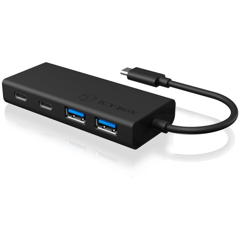 "ICY BOX IB-HUB1426-CPD. Host interface: USB 3.2 Gen 1 (3.1 Gen 1) Type-C, Hub interfaces: USB 3.2 Gen 1 (3.1 Gen 1) Type-A, USB 3.2 Gen 1 (3.1 Gen 1) Type-C. Data transfer rate: 5000 Mbit/s, Product colour: Black, Housing material: Aluminium, Plastic. Power supply type: USB. Width: 40 mm, Depth: 90 mm, Height: 15 mm. Quantity per pack: 1 pc(s), Package width: 25 mm, Package depth: 100 mm"\n"Noble design