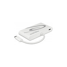 "DeLOCK 87731. Host interface: USB 3.2 Gen 1 (3.1 Gen 1) Type-C. Product colour: Grey, White, Hub interfaces: HDMI, RJ-45, USB 3.2 Gen 1 (3.1 Gen 1) Type-A, USB 3.2 Gen 1 (3.1 Gen 1) Type-C, VGA. Windows operating systems supported: Windows 10, Windows 8.1, Mac operating systems supported: Mac OS X 10.9 Mavericks, Other operating systems supported: Android. Width: 52 mm, Depth: 103 mm, Height: 16 mm. Cable length: 0.14 m"\n"This docking station by Delock can be connected to a computer with a USB-C™ Alt Mode or Thunderbolt™ 3 port and provides a variety of interfaces. One monitor can be operated at the HDMI or VGA output. One built-in USB Type-A port allows the use of peripherals. With a USB-C™ power supply, laptops such as the MacBook or Chromebook can be charged during operation."