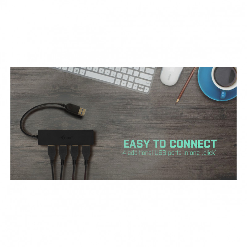 i-tec USB 3.0 HUB is an ideal companion for everybody who does not have enough USB ports in his/her notebook, ultrabook or PC and who has to constantly connect and disconnect his/her favorite USB equipment such as flash disks, mobile phones, tablets, digital cameras, MP3 players, printers, etc.