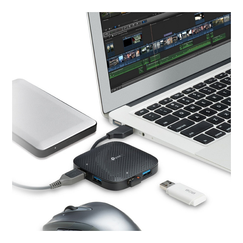 "TP-Link UH400. Host interface: USB 3.2 Gen 1 (3.1 Gen 1) Type-A, Hub interfaces: USB 3.2 Gen 1 (3.1 Gen 1) Type-A. Data transfer rate: 5000 Mbit/s, Product colour: Black. Width: 71 mm, Depth: 71 mm, Height: 16.6 mm. Package width: 109 mm, Package depth: 176 mm, Package height: 29 mm. Chipset: VIA VL812"\n"For Managing Your USB Peripherals