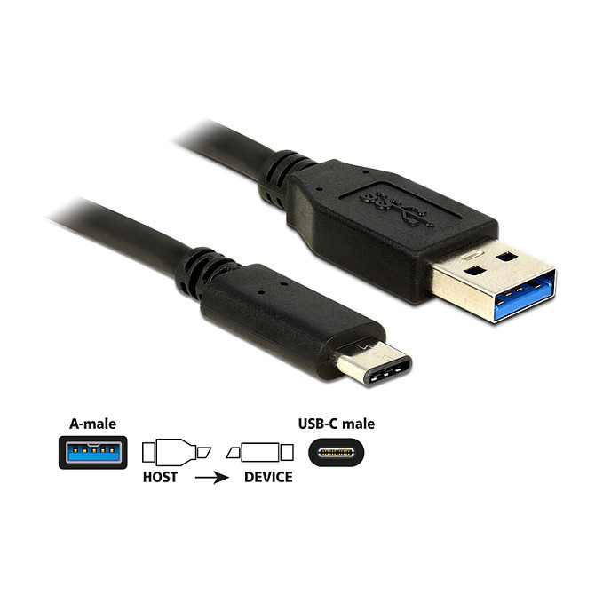 "DeLOCK 0.5m USB3.1-C/USB3.1-A. Cable length: 0.5 m. Connector 1: USB A, Connector 2: USB C, USB version: USB 3.2 Gen 2 (3.1 Gen 2), Connector gender: Male/Male, Maximum data transfer rate: 10 Gbit/s, Product colour: Black"\n"This USB cable by Delock enables the connection between a device with a USB Type-C™ connector, e.g. a smartphone, and a PC or laptop equipped with a USB Type A port."