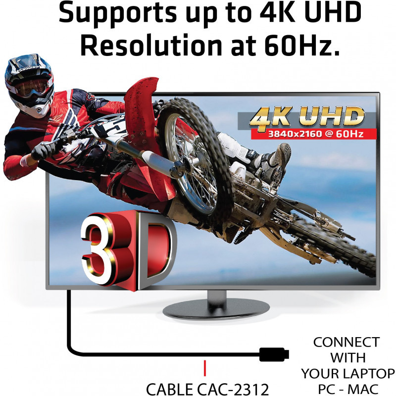 "CLUB3D HDMI 2.0 4K60Hz UHD Cable 5m/16.4ft. Cable length: 5 m, Connector 1: HDMI Type A (Standard), Connector 1 gender: Male, Connector 2: HDMI Type A (Standard), Connector 2 gender: Male, Connector contacts plating: Gold, HDMI version: 2.0a, 3D, Data transfer rate: 18 Gbit/s, Product colour: Black"\n"CAC-2312 - The Club 3D HDMI™ 2.0 4K60Hz UHD Cable enables the connection of your HDMI™ supported Gaming PC or Laptop to an (Ultra) High Definition Monitor or other HDMI™ supported device.