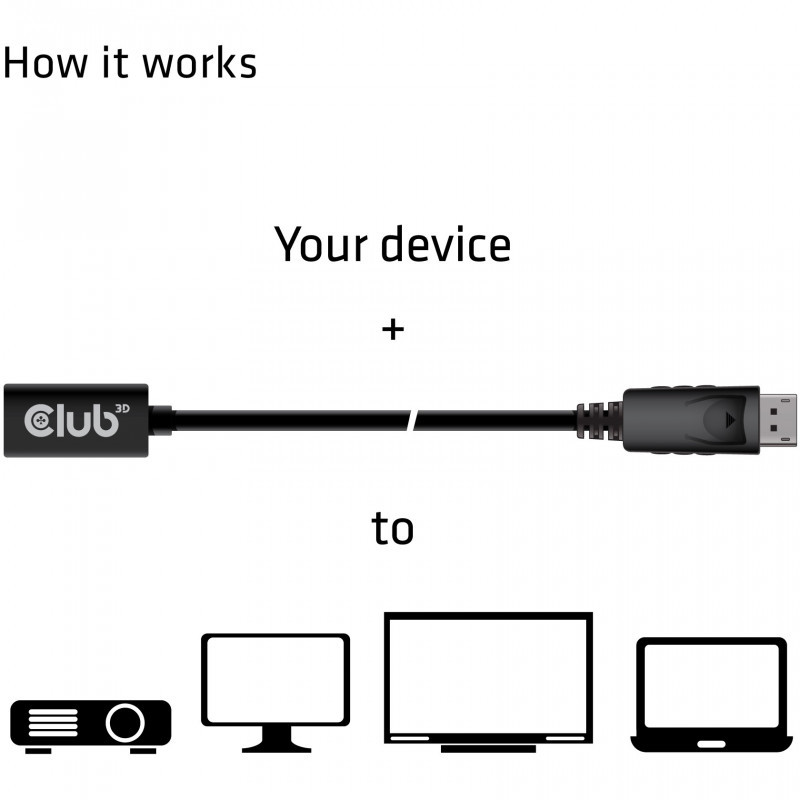 "CLUB3D Mini DisplayPort 1.4 to DisplayPort Extension Cable 8K60Hz DSC 1.2 HBR3 HDR Bidirectional F/M 1m/3.28ft. Cable length: 1 m, Connector 1: Mini DisplayPort, Connector 2: DisplayPort. Compliance certificates: RoHS, Certification: FCC, CE EMI. Weight: 30 g. Package width: 145 mm, Package depth: 145 mm, Package height: 45 mm. Quantity per pack: 1 pc(s)"\n"CAC-1120- Club 3D MiniDisplayPort™ 1.4 to DisplayPort Bidirectional Extension Cable 8K60Hz DSC 1.2 HBR3 HDR enables the connection of your standard DisplayPort™ supported (Gaming) PC or Laptop to any miniDisplayport™ cable to extend the distance to your miniDisplayPort™ supported Television, Monitor, Projector or other miniDisplayPort™ supported device. DisplayPort™ 1.4 adds support for Display Stream Compression 1.2 (DSC), Forward Error Correction, and extends the maximum number of inline audio channels to 32.