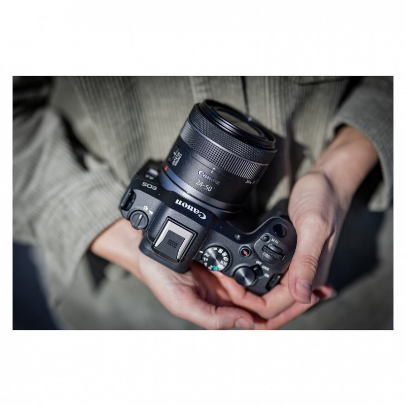 "Canon EOS R8 + RF 24-50mm F4.5-6.3 IS STM Kit. Camera type: MILC, Megapixel (approx.): 24.2 MP, Sensor type: CMOS, Maximum image resolution: 6000 x 4000 pixels. ISO sensitivity (max): 204800. Focal length range: 24 - 50 mm. Fastest camera shutter speed: 1/16000 s. Wi-Fi. HD type: 4K Ultra HD, Maximum video resolution: 3840 x 2160 pixels. Touchscreen. Viewfinder type: Electronic. Weight: 414 g. Product colour: Black"\n