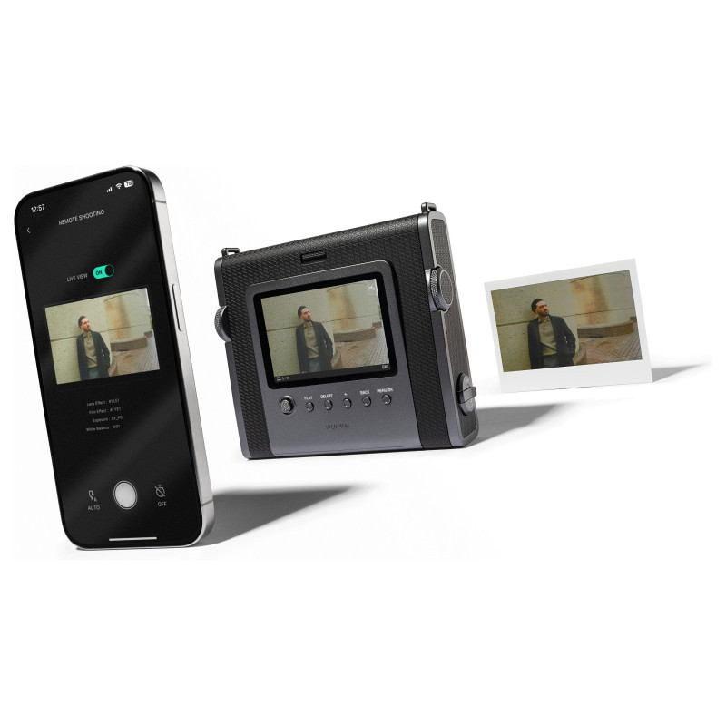 Finished in a modern, yet sophisticated design, and sporting a premium charcoal grey body with jet-black colour accents, the instax WIDE Evo™ camera looks as good as it shoots. Plus, with the Print Crank, Shutter Lever and numerous other satisfyingly manual dials, it’s no wonder we refer to this camera as ‘the photographer’s camera.’