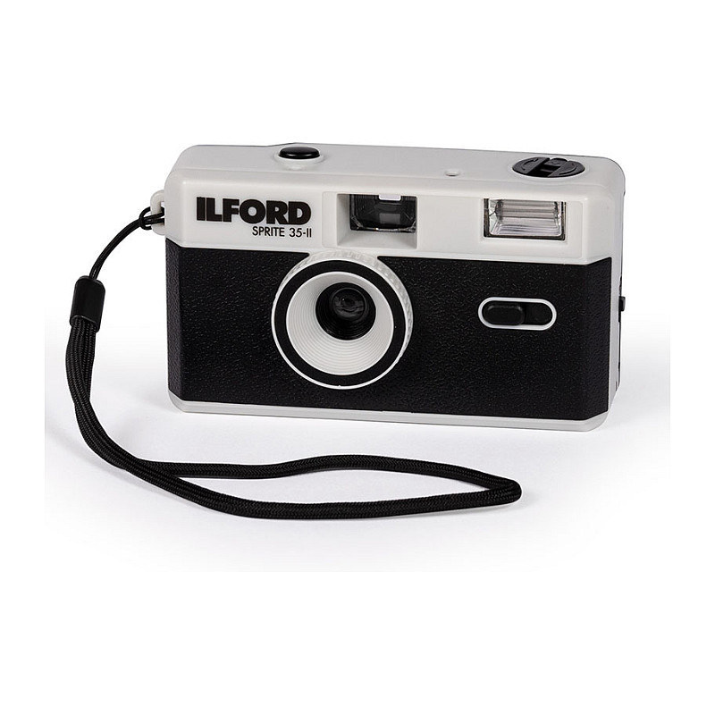 "Ilford Sprite 35 II. Camera type: Compact film camera, Film type: 35 mm, Film speed setting (ISO): 200 - 800. Lens diameter: 3.1 cm, Lens type: Wide-angle. Closest focusing distance: 1 m. Camera shutter type: Mechanical, Camera shutter speed: 120 s. Product colour: Black, Silver"\n"The Ilford Sprite 35-II a fun and affordable way to jump into analogue photography!