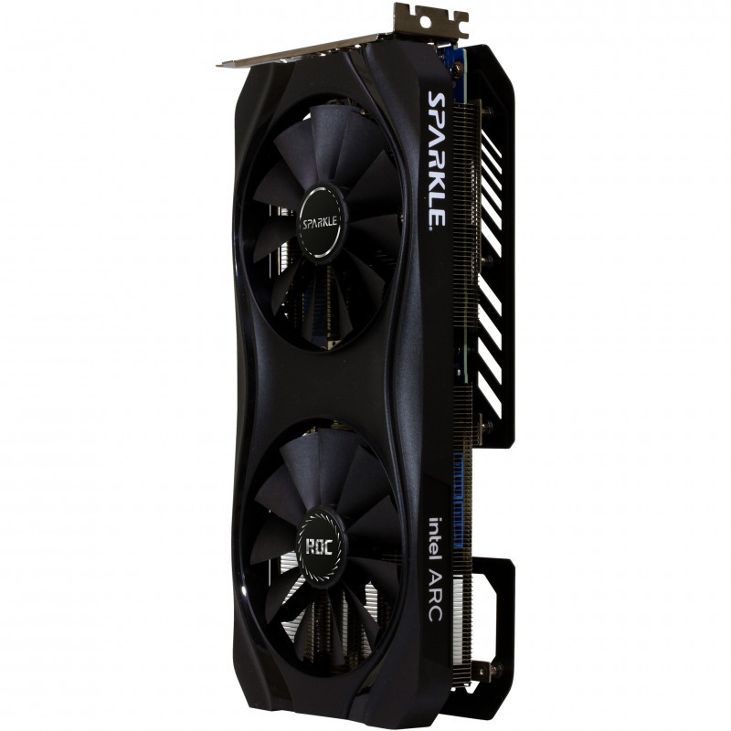 "Sparkle Technology Intel Arc A770 ROC OC Edition. Graphics processor family: Intel, Graphics processor: Arc A770. Discrete graphics card memory: 16 GB, Graphics card memory type: GDDR6, Memory bus: 256 bit. Maximum resolution: 7680 x 4320 pixels. DirectX version: 12 Ultimate, OpenGL version: 4.6. Interface type: PCI Express 4.0. Cooling type: Active, Number of fans: 2 fan(s)"\n"The SPARKLE Intel Arc A770 ROC OC Edition is the brand-new BEST choice of the series, comes with