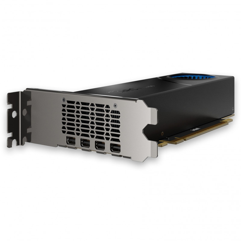 "Intel Arc Pro A50. Graphics processor family: Intel, Graphics processor: Arc Pro A50, Processor frequency: 2050 MHz. Discrete graphics card memory: 6 GB, Graphics card memory type: GDDR6, Memory bus: 96 bit. Maximum resolution: 7680 x 4320 pixels. DirectX version: 12 Ultimate, OpenGL version: 4.6. Interface type: PCI Express x16 4.0. Cooling type: Active, Number of fans: 1 fan(s)"\n"Introducing the latest professional GPU from Intel: the Intel Arc Pro A50 GPU. With built-in ray tracing hardware, graphics acceleration, and machine learning capabilities, the Intel Arc Pro A50 GPU unites fluid viewports, the latest in visual technologies, and rich content creation in a small form factor.