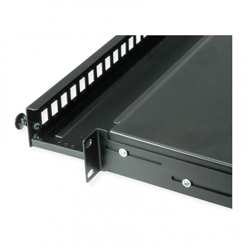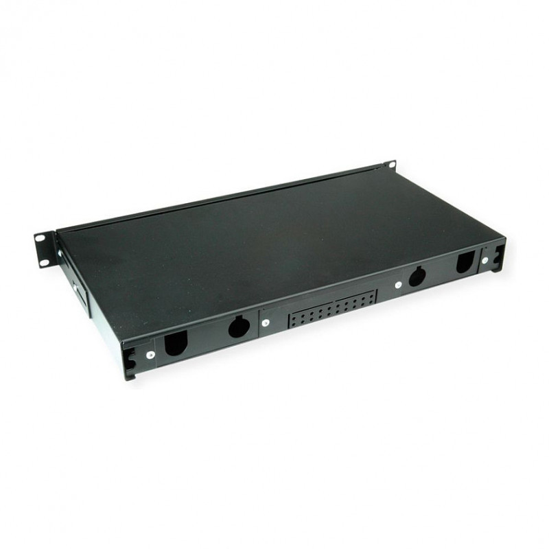 "VALUE 21.99.0651. Fiber optic connector: LC, SC. Rack capacity: 1U, Product colour: Black, Material: Steel. Width: 480 mm, Height: 44 mm, Depth: 243 mm"\n"19"" FO panel for splitting multicore FO cables to single cores"