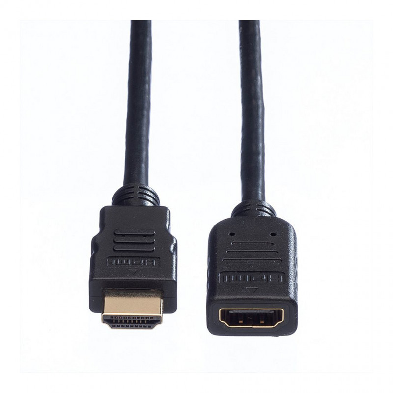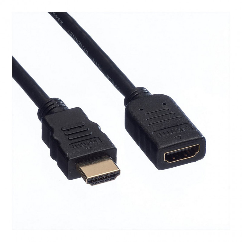"VALUE HDMI High Speed Cable + Ethernet, M/F 2 m. Cable length: 2 m, Connector 1: HDMI Type A (Standard), Connector 1 gender: Male, Connector 2: HDMI Type A (Standard), Connector 2 gender: Male, Product colour: Black"\n"Extension cable for High Speed HDMI with M/F - connectors - for extension of existing HDMI cables with a resolution of up to 3840x2160 @30Hz!"