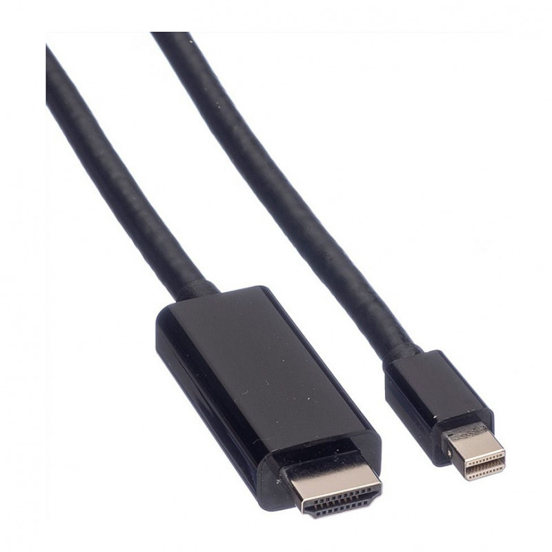 "VALUE Mini DisplayPort Cable, Mini DP-UHDTV, M/M, 2 m. Cable length: 2 m, Connector 1: Mini DisplayPort, Connector 1 gender: Male. Compliance certificates: RoHS"\n"Mini DisplayPort to UHDTV cable for transferring content from your graphics card (DisplayPort) to your TV (UHDTV) - with a quality of up to 3840x2160 @60Hz, incl. audio transmission!"