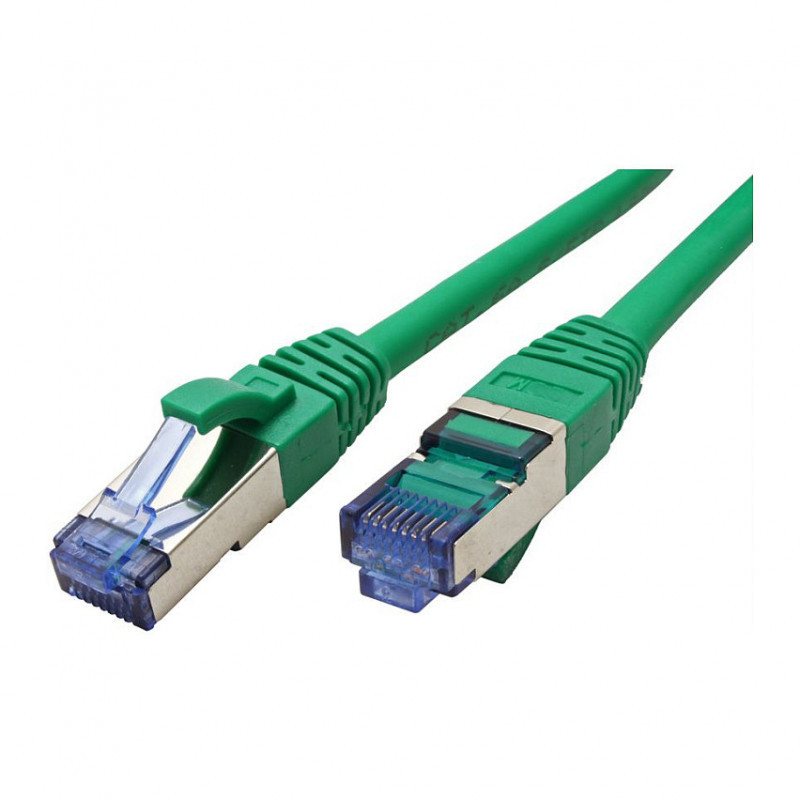 "VALUE 21.99.1944. Cable length: 0.3 m, Cable standard: Cat6a, Cable shielding: S/FTP (S-STP), Connector 1: RJ-45, Connector 2: RJ-45, Product colour: Green"\n"The cheap solution for data transfer rates of up to 10 Gbit/s and a bandwidth of 500 MHz. Patch cable for networking connections between devices. Prepared shielded Twisted Pair cable (PiMF) with RJ-45 connectors on both ends. Durable due to moulded kink protection. Flexible cable, suitable for narrow bending. Impedance: 100 Ohm. Contact settings 1:1, in accordance with the EIA/TIA 568 standard. Construction: 8 lines, pairs shielded with aluminium foil, complete braided shielding.