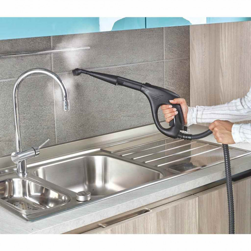 12 included accessories: floor brush, floor cloth, sockette, 3 small brushes with nylon bristles, accessories adapter, small brush with window cleaning kit, steam concentrator, steam lance, funnel. |