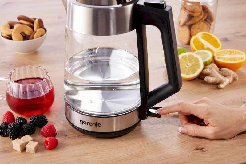 Gorenje K17OGS | Kettle | Electric | 1.7 L | 2200 W | 360° rotational base | Stainless steel/Glass | Stainless steel