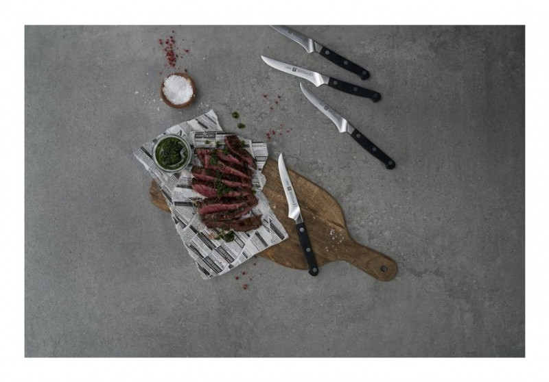 ZWILLING Pro 4 vnt peiliukų rinkinys – kompaktiškas ir profesionalus rinkinys, skirtas įvairiems kasdieniams virtuvės darbams. Pagaminti iš aukštos kokybės nerūdijančio plieno, peiliukai išsiskiria ilgaamžiškumu, tvirtumu ir išlaiko ilgai aštrumą. Ergonomiškos rankenos suteikia patogumą naudojant, o kompaktiškas dydis puikiai tinka smulkiems pjovimo darbams, pavyzdžiui, daržovėms, vaisiams ar žolelėms.