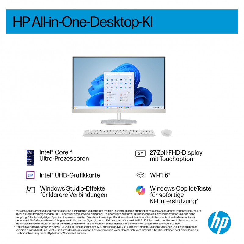 HP 27-cr2275ng All-in-One PC (27", Core Ultra 7 255U) – tai modernus, galingas ir stilingas „viskas viename“ kompiuteris, skirtas tiek produktyviam darbui, tiek namų naudojimui. Dėl naujos kartos Intel Core Ultra 7 255U procesoriaus šis modelis užtikrina gerą našumo ir energijos efektyvumo balansą, todėl puikiai tinka multitasking, biuro darbams, nuotoliniam darbui ir kasdienėms užduotims.