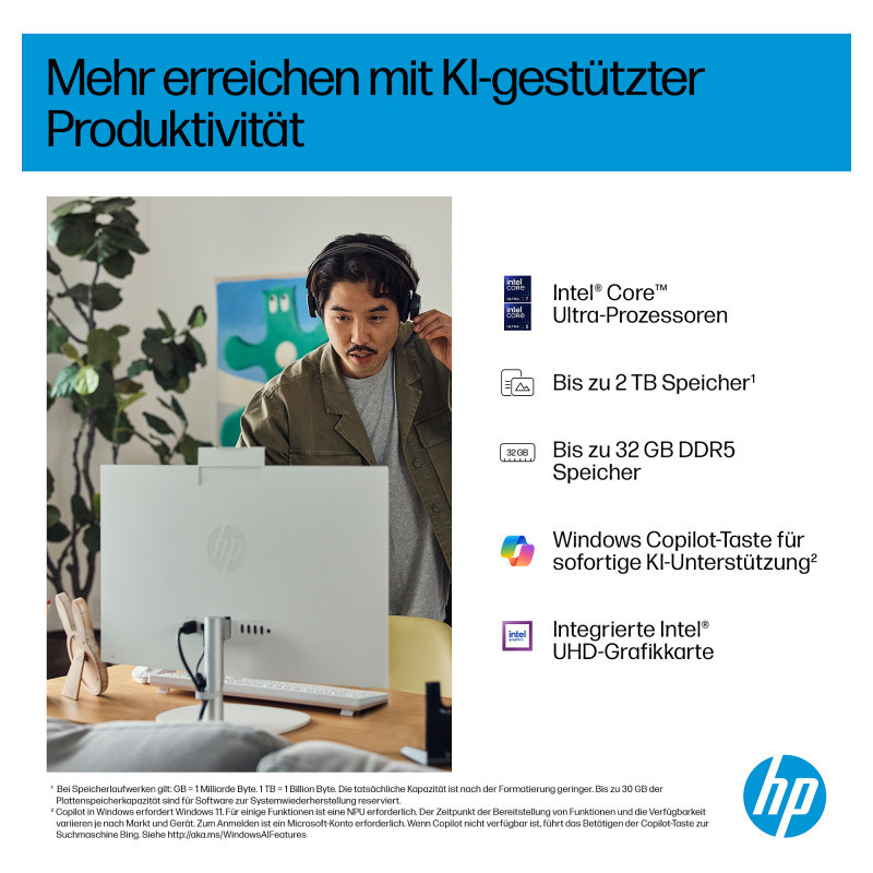 HP All-in-One PC 27-cr2150ng – modernus „viskas viename“ kompiuteris, sukurtas patogiam kasdieniam darbui, mokslams ir pramogoms. Įrenginys aprūpintas Intel Core Ultra 5 225U procesoriumi, kuris užtikrina efektyvų energijos naudojimą ir stabilų našumą atliekant įprastas užduotis.