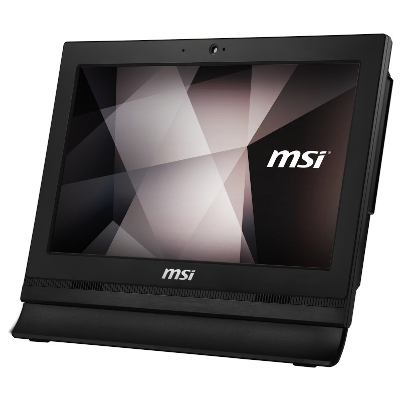 "MSI Pro 16T 10M-228XDE. Product type: All-in-One PC. Display diagonal: 39.6 cm (15.6""), HD type: HD, Display resolution: 1366 x 768 pixels, Touchscreen. Processor family: Intel® Celeron®, Processor frequency: 1.9 GHz. Internal memory: 4 GB, Internal memory type: DDR4-SDRAM. Total storage capacity: 250 GB, Storage media: SSD. On-board graphics card model: Intel® UHD Graphics. Built-in camera. Product colour: Black"\n"YOUR COMMERCIAL PARTNER