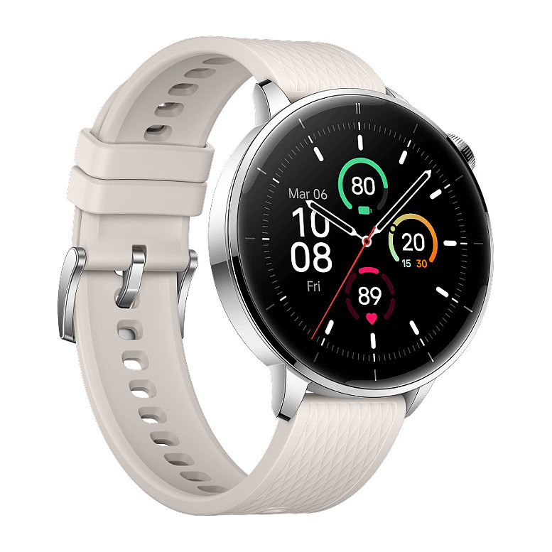 "OnePlus Watch 3 43mm. Display diagonal: 3.35 cm (1.32""), Display technology: AMOLED, Display resolution: 466 x 466 pixels, Touchscreen. Wi-Fi. GPS (satellite). Battery capacity: 354 mAh. Weight: 37.8 g. Band material: Rubber, Band colour: White"\n"Compact Power,