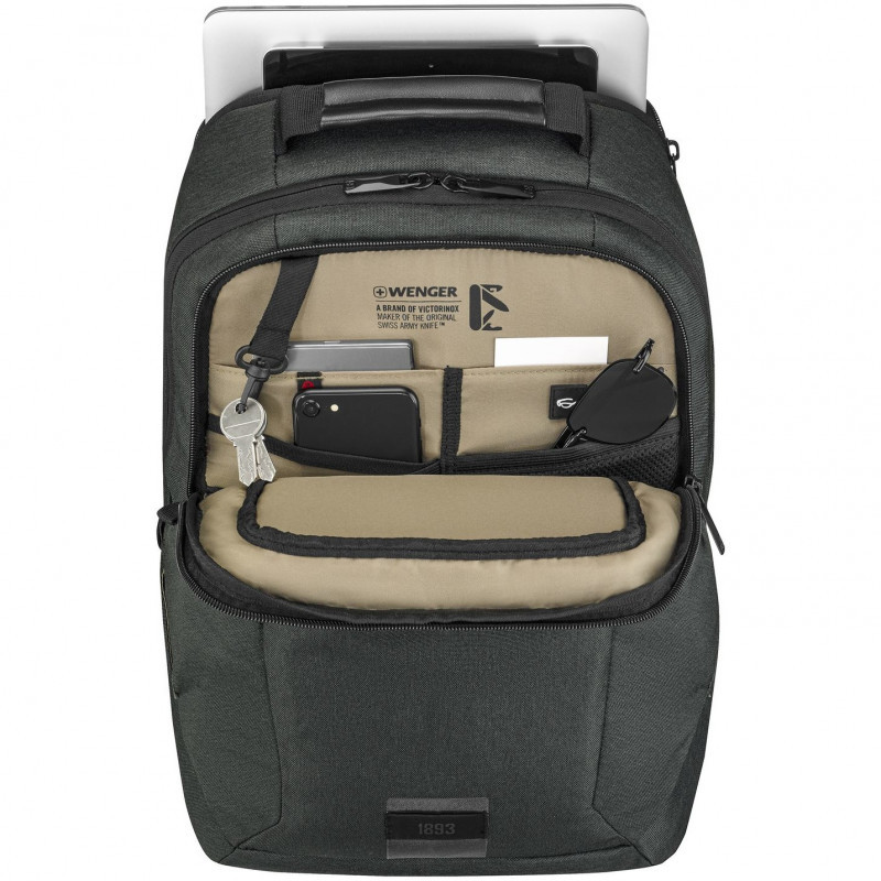 "Wenger/SwissGear MX Eco Professional. Backpack type: Casual backpack, Product main colour: Grey, Style: City. Width: 320 mm, Depth: 210 mm, Height: 460 mm. Material: Recycled plastic, Total amount of recycled materials used for making: 100%"\n"Laptop Backpack with Tablet Pocket