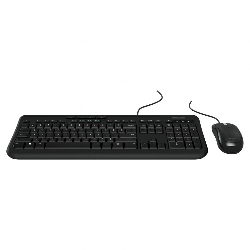 "Incase Designed by Microsoft Wired Desktop 600. Keyboard form factor: Full-size (100%). Keyboard style: Straight. Connectivity technology: Wired, Device interface: USB, Keyboard layout: QWERTY, Recommended usage: Universal. Product colour: Black. Mouse included"\n"Confidently connected and undeniably understated, the Incase Wired Desktop 600, Designed by Microsoft™, is an all-in-one setup. The spill-resistant keyboard and optical mouse feature a plug-and-play setup, paired with quiet-touch keys and quick access to one-touch media controls, plus a full number pad and ambidextrous mouse."