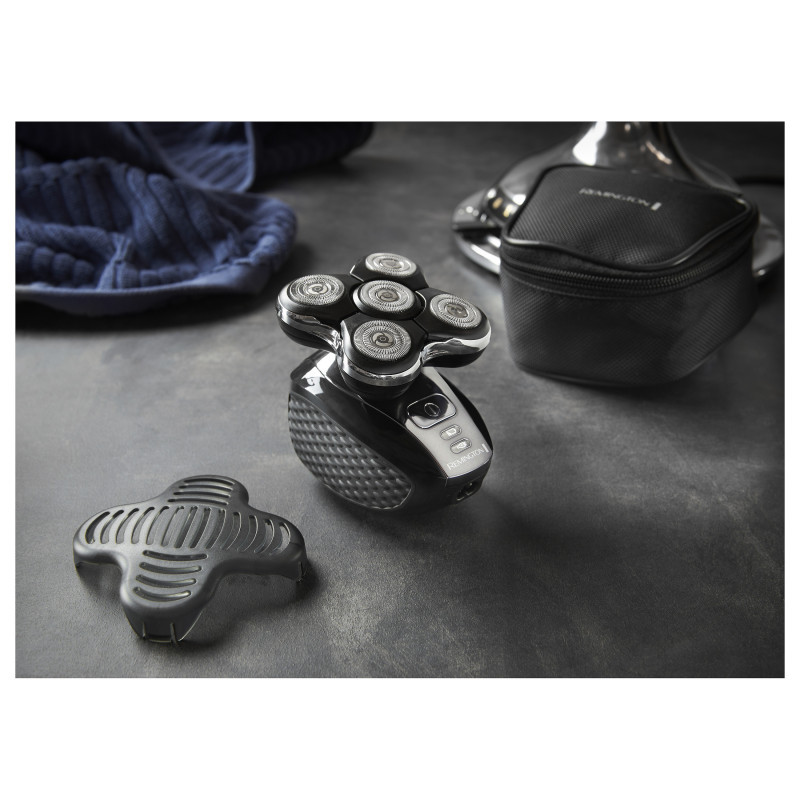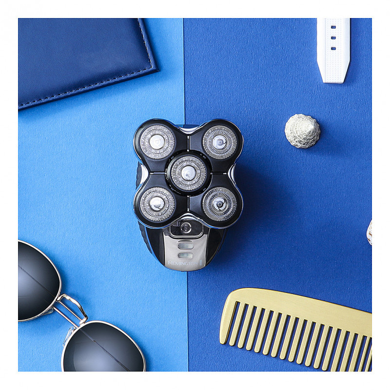 "Remington XR1500. Product colour: Black, Body grooming attachments: Head shaver, Minimum hair length: 0.2 mm. Power source: Battery, Operating time: 50 min, Battery recharge time: 2 h. Package type: Box"\n"The Ultimate Series RX5 Head Shaver delivers skin-close results in less than 2-minutes with 5 Cutting Heads, for fast and easy head shaving.