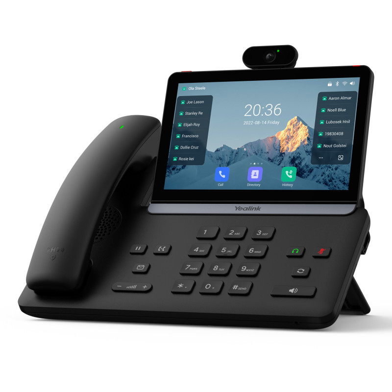 "Yealink -SIP-T88V Pro. Product type: IP Phone, Product colour: Black, Handset type: Wired & Wireless handset. Operating system installed: Android. Phonebook capacity: 1000 entries. Volume control: Buttons, Management platform: Yealink Device Management Platform. Display: LCD, Display diagonal: 17.8 cm (7""), Display resolution: 1024 x 600 pixels"\n"The SIP Phone T88V Pro is the next-gen premium desk phone with fashion-forward design, AI-empowered audio, enhanced system security, smarter UX, and a sustainable approach. The fashion-forward appearance, featuring a slimmer body, adjustable color touchscreen with invisible hinge, line keys, and red emergency button, adapts to modern workspaces and provides a comfortable hand feel. Empowered by AI noise cancellation, optimized Acoustic Shield, and enhanced 3W speaker, it delivers ultra-clear HD audio. The industry-leading Android 13 system and TEE hardware encryption provide enhanced security mechanisms and stronger performance. Built with redesigned UI, Bluetooth 5.0, Wi-Fi 6, and a 5MP camera for HD video calls, it offers easier access to rich functions like Accessibility Mode, Dark Theme, and BLF floating. The adoption of PCR and antimicrobial design, along with Power-saving mode, adheres to sustainability goals."