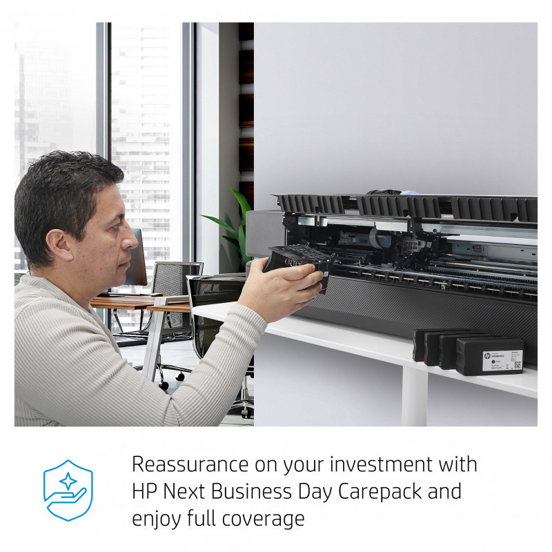 "HP 3 year Next Business Day Onsite Hardware Support for Designjet T5XX (36 inch). License quantity: 1 license(s), Number of years: 3 year(s), Next Business Day (NBD)"\n"When hardware issues come up, the sooner you can get running again, the better. Have expertise at the ready with HP Hardware Next Business Day[1] Onsite Service, and improve your product uptime. With high-quality remote assistance or convenient onsite support available the next day, help is there when you need it—so you can get back to work."