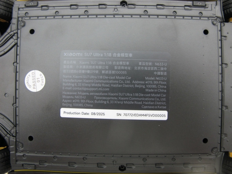 Xiaomi SU7 Ultra 1:18 Die-cast Model Car | Lightning Yellow | Zinc alloy, ABS, SAN, PVC