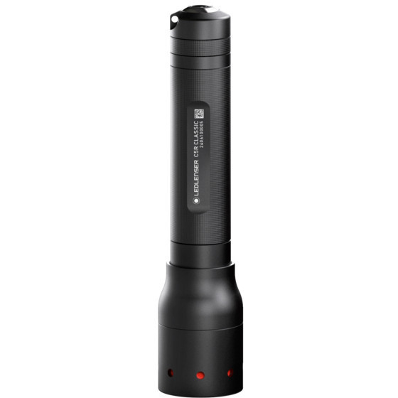 "Ledlenser 503151. Flashlight type: Hand flashlight, Product colour: Black, Housing material: Aluminium. International Protection (IP) code: IP54, Operating temperature (T-T): -20 - 40 °C. Lamp type: LED, Lamps quantity: 1 lamp(s), Luminous flux: 420 lm. Battery life (max): 15 h, Battery recharge time: 2.5 h. Depth: 117 mm, Weight: 75 g, Head diameter: 2.6 cm"\n"Measuring 117 mm, the C5R is admittedly somewhat bigger that its sister (the P5). On the other hand it's slightly lighter and definitely more powerful. The reason is its lithium-ion battery, helping it to run for 12 hours. The light can be charged simply using the Floating Charge System. It has three light functions and can fit in a shirt or trouser pocket.