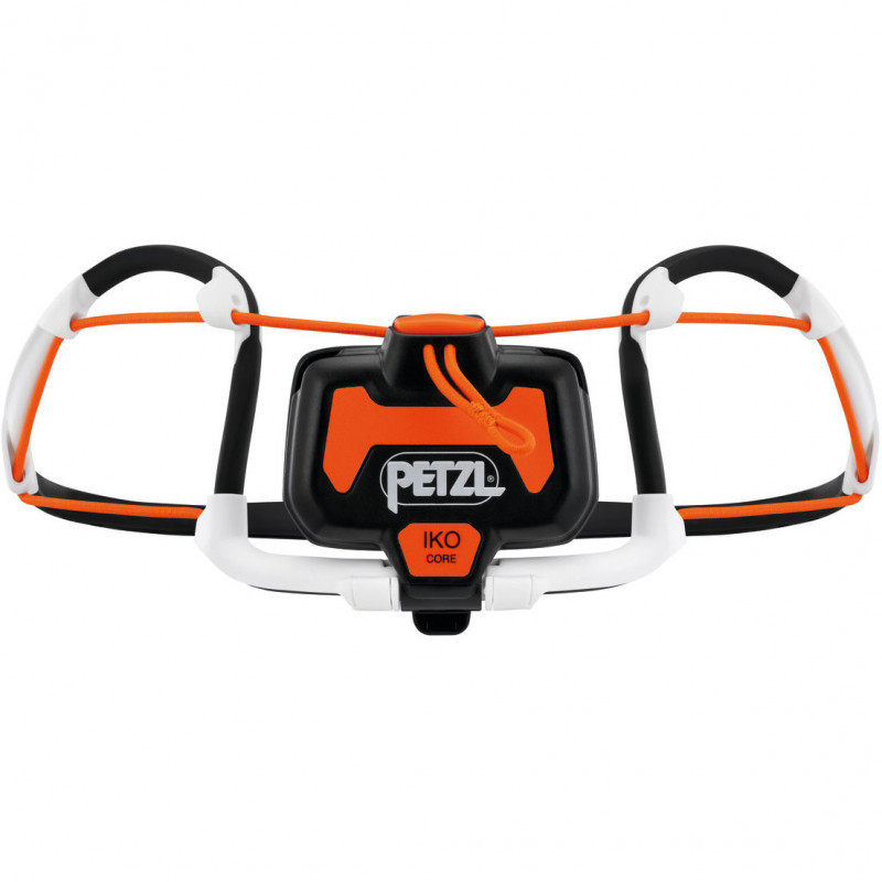 "Petzl E104BA00. Flashlight type: Headband flashlight, Product colour: Black, Orange, White, Housing material: Plastic. International Protection (IP) code: IPX4, Certification: CE. Lamp type: LED, Light output (max): 500 lm, Light beam distance (min): 10 m. Charging source: USB, Battery type: AAA, Battery capacity: 1250 mAh. Weight: 79 g"\n"The rechargeable IKO CORE headlamp combines multiple technologies to offer 500 lumens at only 79 g. Featuring an AIRFIT headband, an ultra-thin lamp body and an energy source worn in the rear, the headlamp is balanced and comfortable enough to be imperceptible. The multiple LEDs are ideally distributed to provide uniform lighting, for optimal visual comfort. Thanks to its HYBRID CONCEPT design, IKO CORE comes with the CORE rechargeable battery and is also compatible with three AAA/LR03 batteries (not included). It is versatile: can also be worn around the neck, or transformed into a lantern, using the storage pouch. It can be flattened to reduce bulk, making it practical for all outdoor activities.