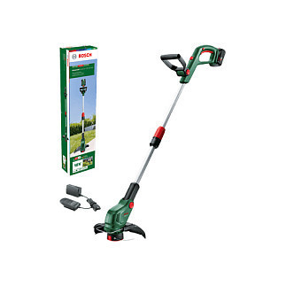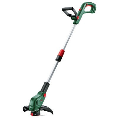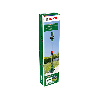 "Bosch UniversalGrassCut. Type: 2-in-1 Brush cutter & String trimmer, Cutting diameter (max): 26 cm, Height adjustment: 30 cm. Power source: Battery, Battery voltage: 18 V, Battery capacity: 2 Ah. Weight: 2.4 kg, Width: 260 mm, Depth: 340 mm. Country of origin: Germany"\n