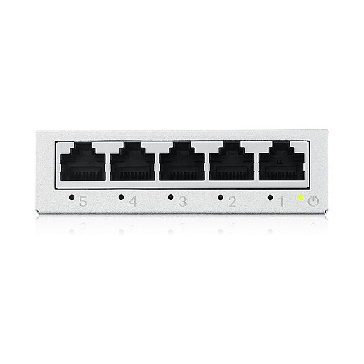 "Zyxel GS-105BV5-EU0101F. Switch type: Unmanaged, Switch layer: L2. Basic switching RJ-45 Ethernet ports type: Gigabit Ethernet (10/100/1000), Basic switching RJ-45 Ethernet ports quantity: 5. MAC address table: 2000 entries, Switching capacity: 10 Gbit/s. Networking standards: IEEE 802.3, IEEE 802.3u, IEEE 802.3x"\n"Full network coverage with dependable mini switch