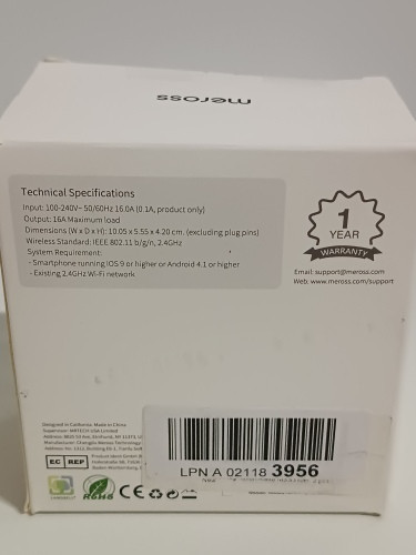 Ecost prekė po grąžinimo, Meross išmanusis Wifi kištukinis lizdas, itališkas išmanusis 16 A išmanusis energijos monitorius (L tipas), laikmačio funkcija, valdymas balsu ir programėlė, suderinamas su Smartthings, Alexa, Google Assistant, 2 pakuotės