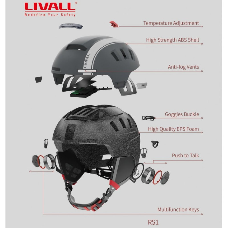 Livall RS1 Bluetooth PTT Alert SOS Slidinėjimo šalmas White M