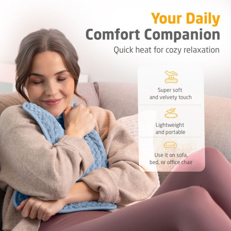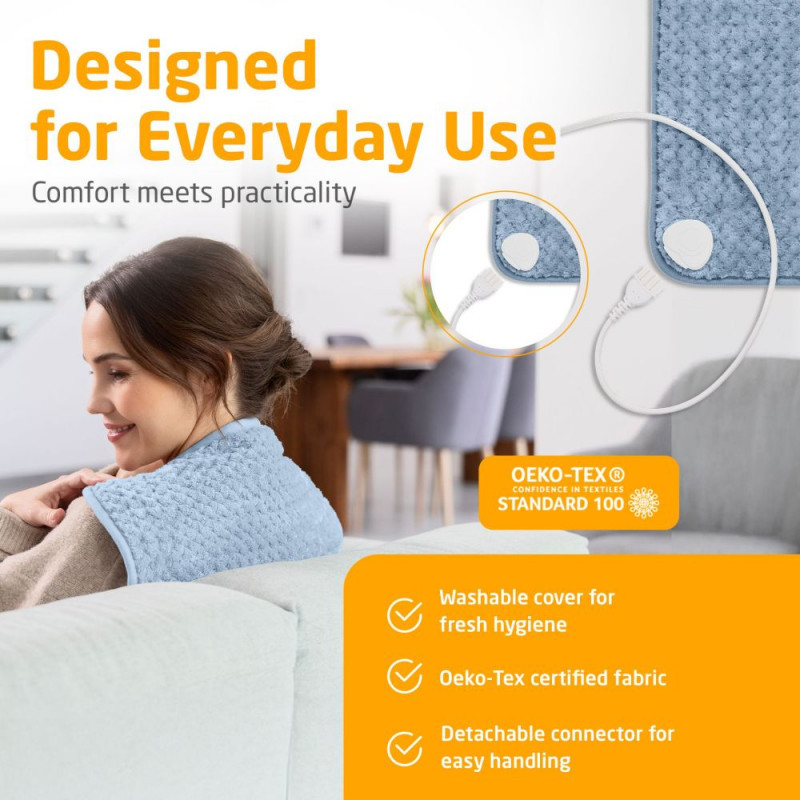 Medisana HP 515 Heating Pad, Denim Blue – komfortiška elektrinė šildymo pagalvė, skirta raumenų atsipalaidavimui, skausmo mažinimui ir komfortui namuose. Reguliuojama temperatūra leidžia pasirinkti tinkamiausią šilumos lygį. Minkšta ir maloni džinsų mėlynos spalvos medžiaga suteikia patogumą naudojant ir stilingą išvaizdą. Ergonomiškas dizainas leidžia šildyti įvairias kūno vietas: nugarą, pečius, pilvą ar kojas.