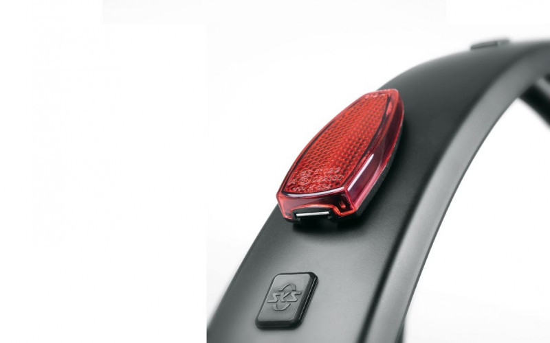 375 x 85 mm, tvirtinamas ant rėmo, tinka padangoms iki 35 mm pločio, 64 g, storis 0.9 mm, medžiaga: skydelis- PP, laikikliai - PA, dirželis - TPU