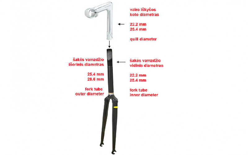 25.4 mm vairui, 28.6 mm šakei, 180 mm, kampas 40, plienas