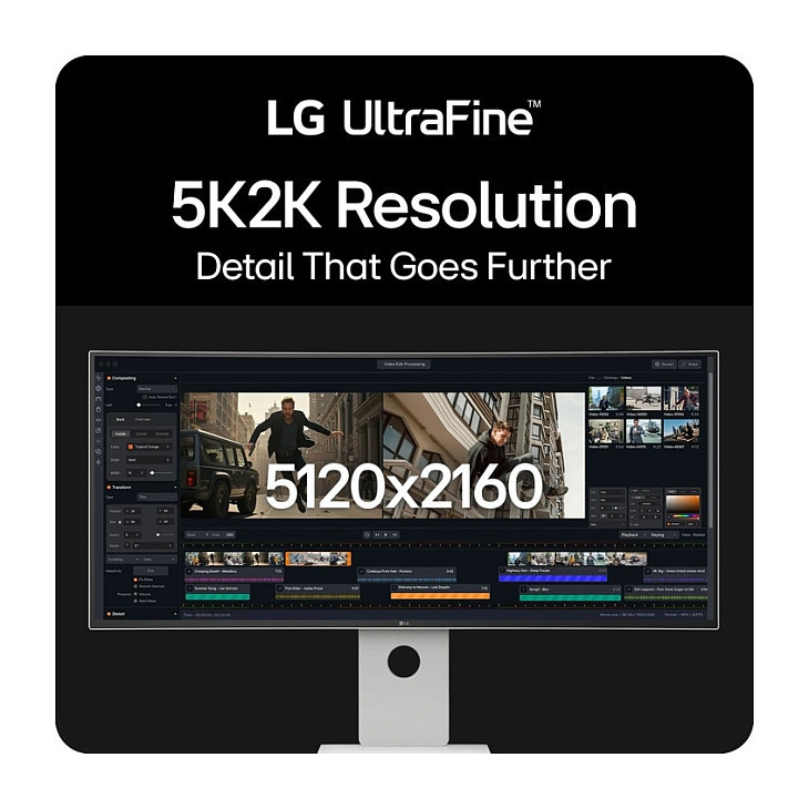 The 5K2K (5120x2160) Nano IPS Black display offers 33% more pixels than standard 4K UHD, delivering ultra-wide resolution, vivid color, and razor-sharp detail—creating a spacious, precise workspace ideal for video editing, graphic design, photography, and color-critical tasks.