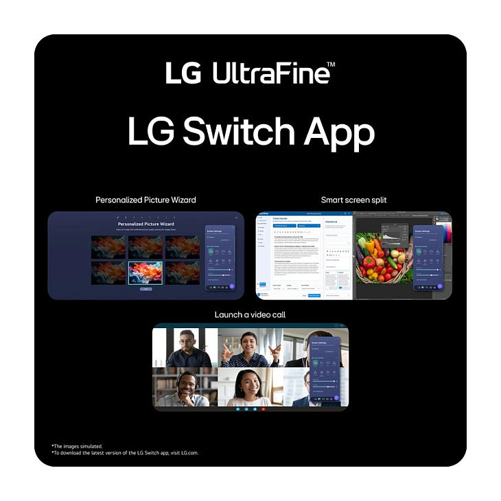 Easily customize image settings, split your screen into 11 layouts, and launch video calls instantly with the LG Switch App—streamlining your setup for productivity and entertainment.