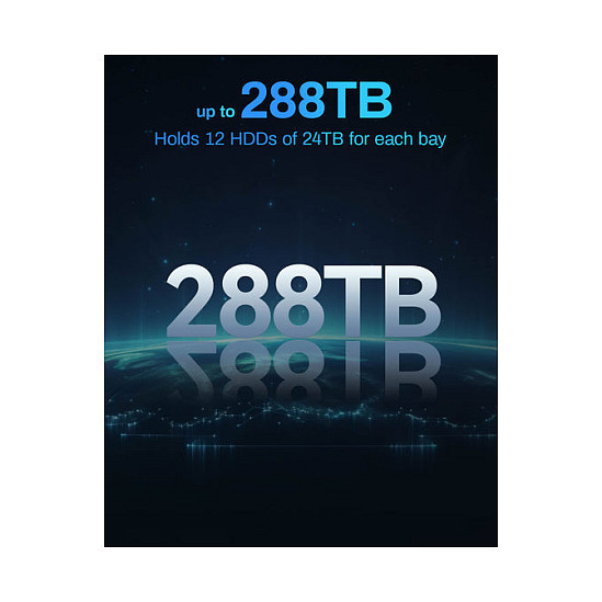 Flexible Storage Solutions: The T12-500 Pro NAS enclosure supports various RAID configurations, including Single, RAID 0, 1, 5, 6, and 10. The T12-500 Pro 12-bay NAS can accommodate up to 12 3.5"" SATA HDDs, 2.5"" SATA HDDs, and 2.5"" SATA SSDs, offering a remarkable maximum storage capacity of up to 288TB (using 24TB HDDs as an example). It features TerraMaster’s TRAID/TRAID+ for online capacity expansion, migration, and redundant disk setups. Users can select between ext4 and Btrfs file systems, and expand storage effortlessly with the TerraMaster USB DAS disk array."