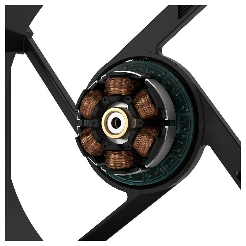 The ProArt PF120 fan delivers superior cooling with premium quality and design for unmatched reliability . Boasting a 28mm frame, powerful 3-phase and 6-pole motor, CNC-milled brass bearing housing, reinforced Liquid Crystal Polymer (LCP) blades, and patented daisy-chain connectors to streamline installation and cable management, the ProArt PF120 is the ideal choice for users who demand peak performance and effortless integration."