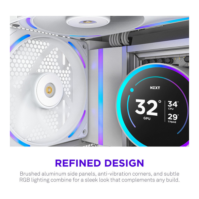 - Digital Control: Fine-tune fan speeds and RGB lighting effects through NZXT CAM* or motherboard software. *Requires NZXT Control Hub or NZXT motherboard required, sold separately.