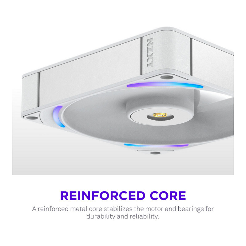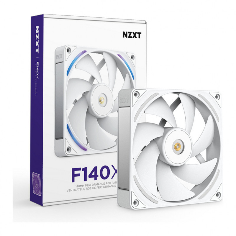 "NZXT F140X. Type: Fan, Fan diameter: 14 cm. Width: 140 mm, Depth: 30 mm, Height: 140 mm. Product colour: White"\n"The NZXT Performance Fans deliver powerful, quiet cooling with LCP construction, optimized blades, and a hybrid bearing system for superior airflow and durability. A reinforced core, advanced motor, and subtle RGB lighting combine performance and style for any gaming PC.