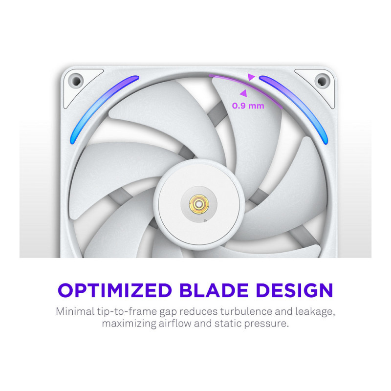 - Optimized Blade Design: Ultra-tight tip-to-frame clearance reduces turbulence and air leakage, maximizing airflow and static pressure at every speed.