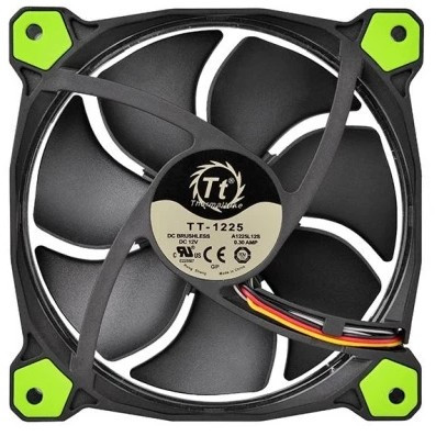 "Thermaltake Riing 14. Type: Fan, Fan diameter: 14 cm, Rotational speed (max): 1400 RPM, Maximum air pressure: 1.58 mmH2O. Voltage: 12 V. Width: 140 mm, Depth: 140 mm, Height: 25 mm. Product colour: Black, Green"\n"Riing 14 High Static Pressure LED Radiator Fan